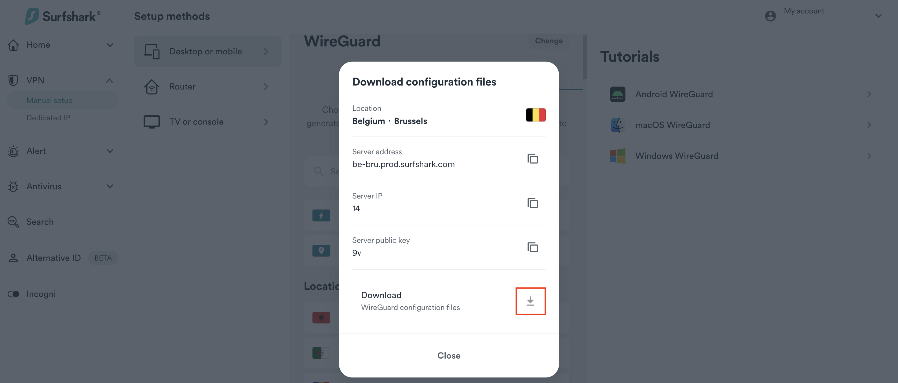For any manual WireGuard® connection, you first need an active Surfshark subscription. You can find the available plans on Surfshark’s pricing page.