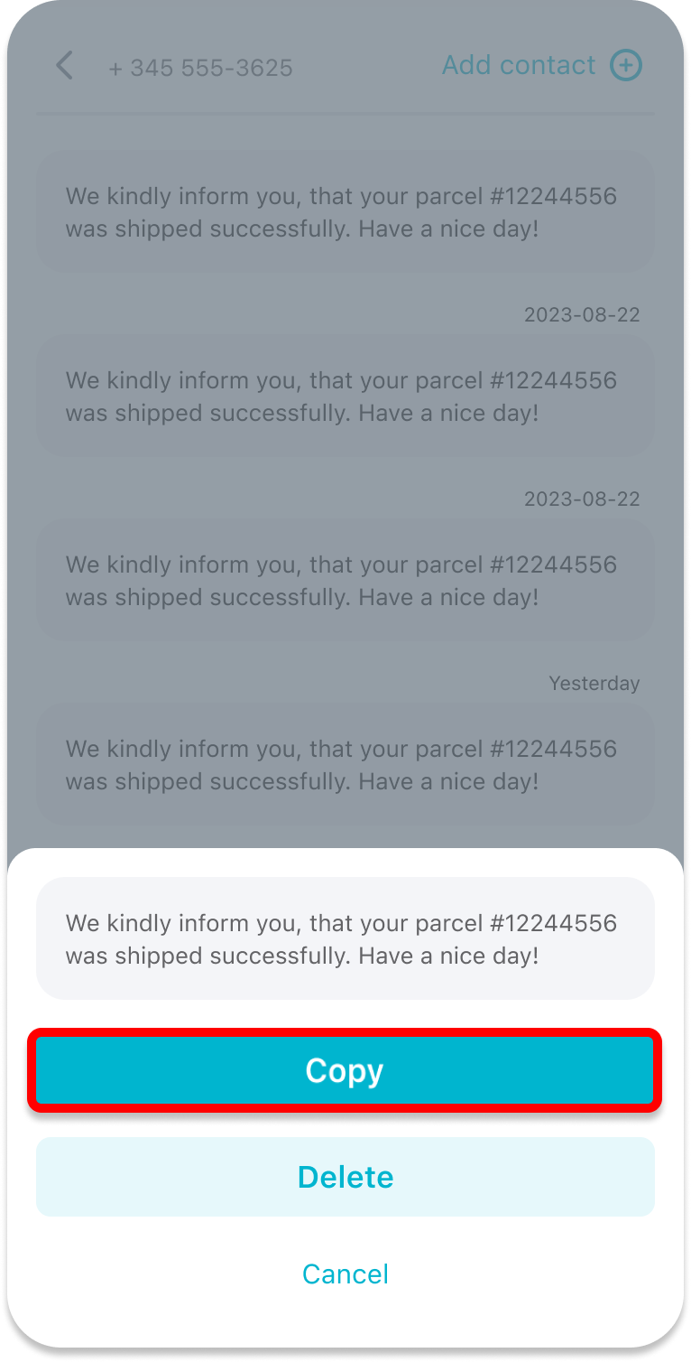 5. To delete or copy an individual message, tap on a sender of your choice.