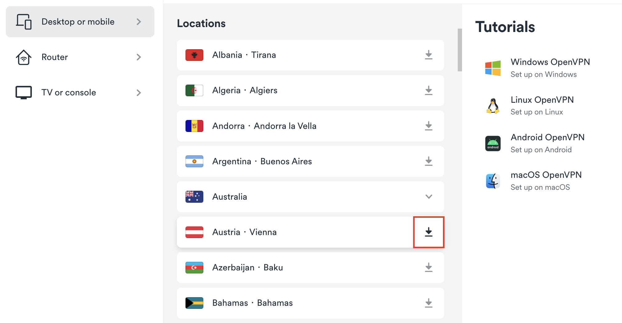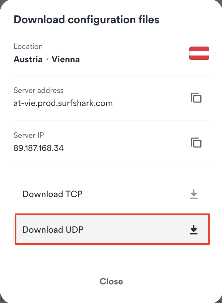 5. Press on Download UDP or Download TCP depending on which protocol you'd like to use.