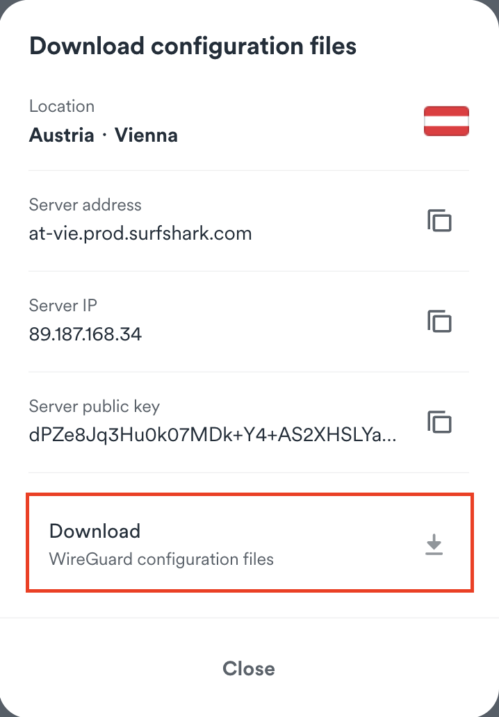 4. Click Download WireGuard configuration files.