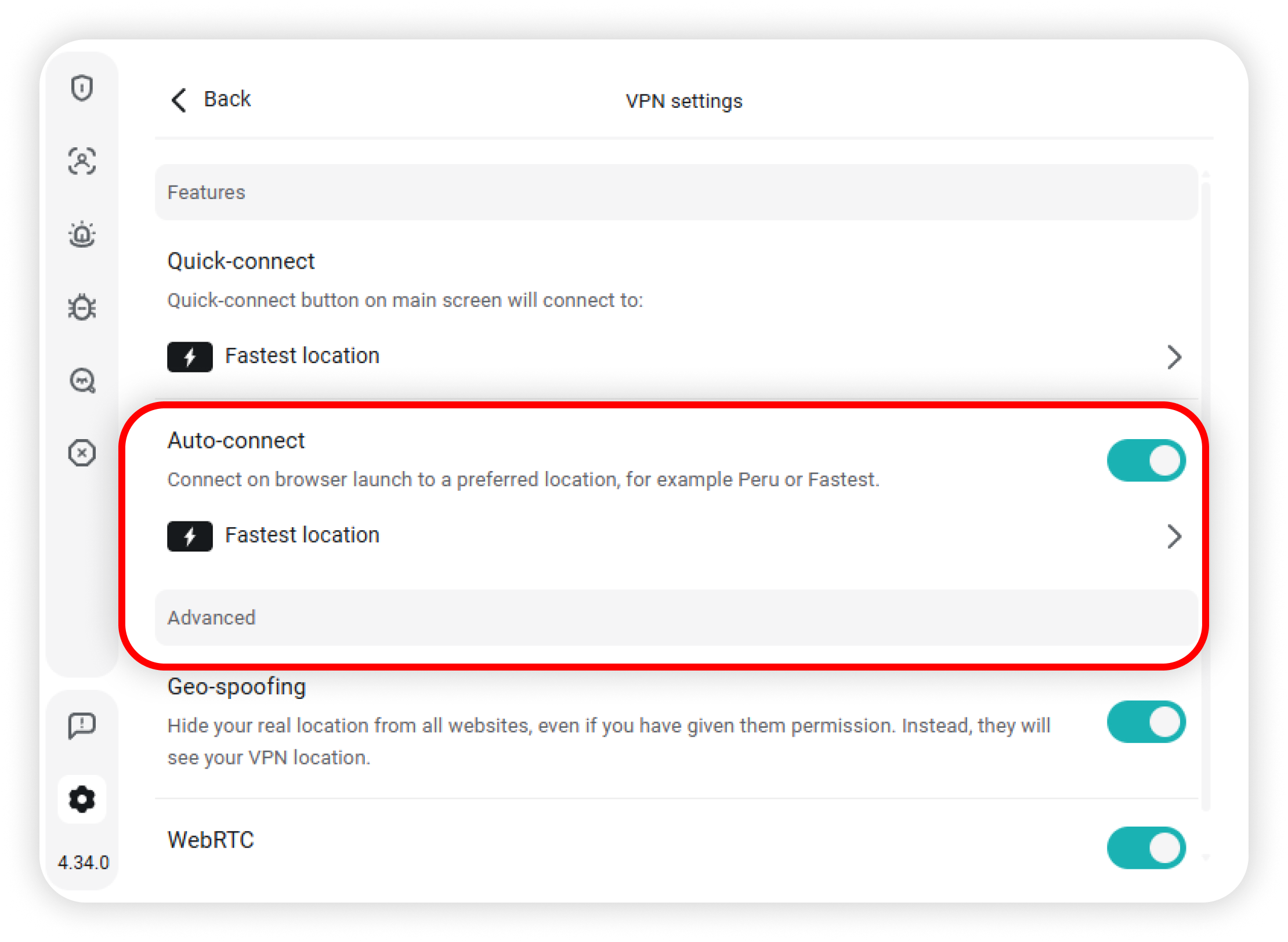 - Enable the Auto-connect feature to connect automatically every time you start your browser:
