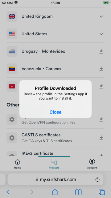 Download and install the IKEv2 profile