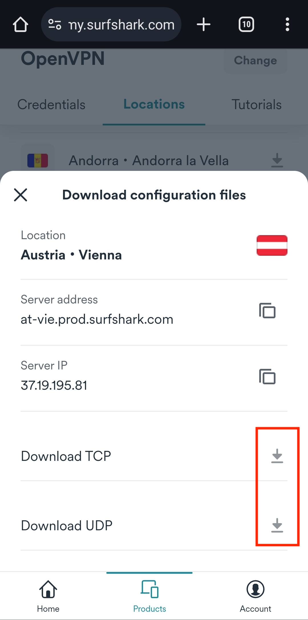 - Go to the Surfshark login page and log in. Tap on Produtcs > VPN > Manual setup > Desktop or mobile > OpenVPN