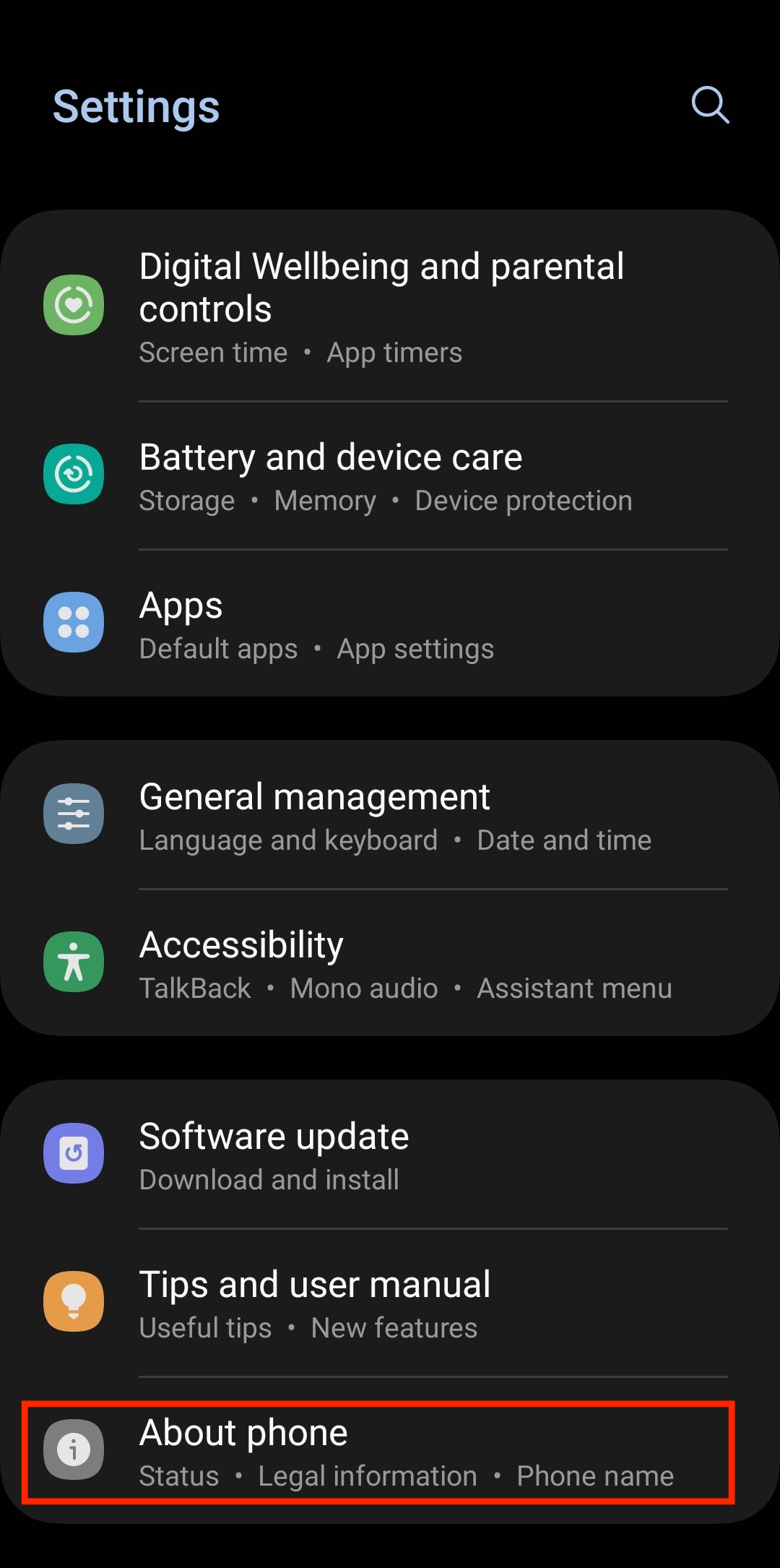 1. Open Settings on your Android device and go to the About phone/About device section.
