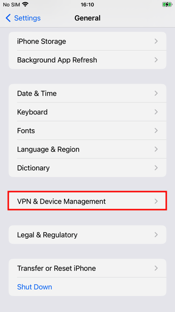 1. Open the Settings app on your device, go to General, and tap on the VPN & Device Management tab.