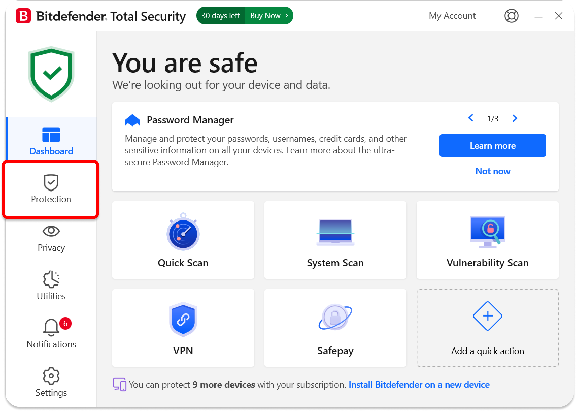 1. Open the BitDefender application and go to the Protection tab on the left side of the app.