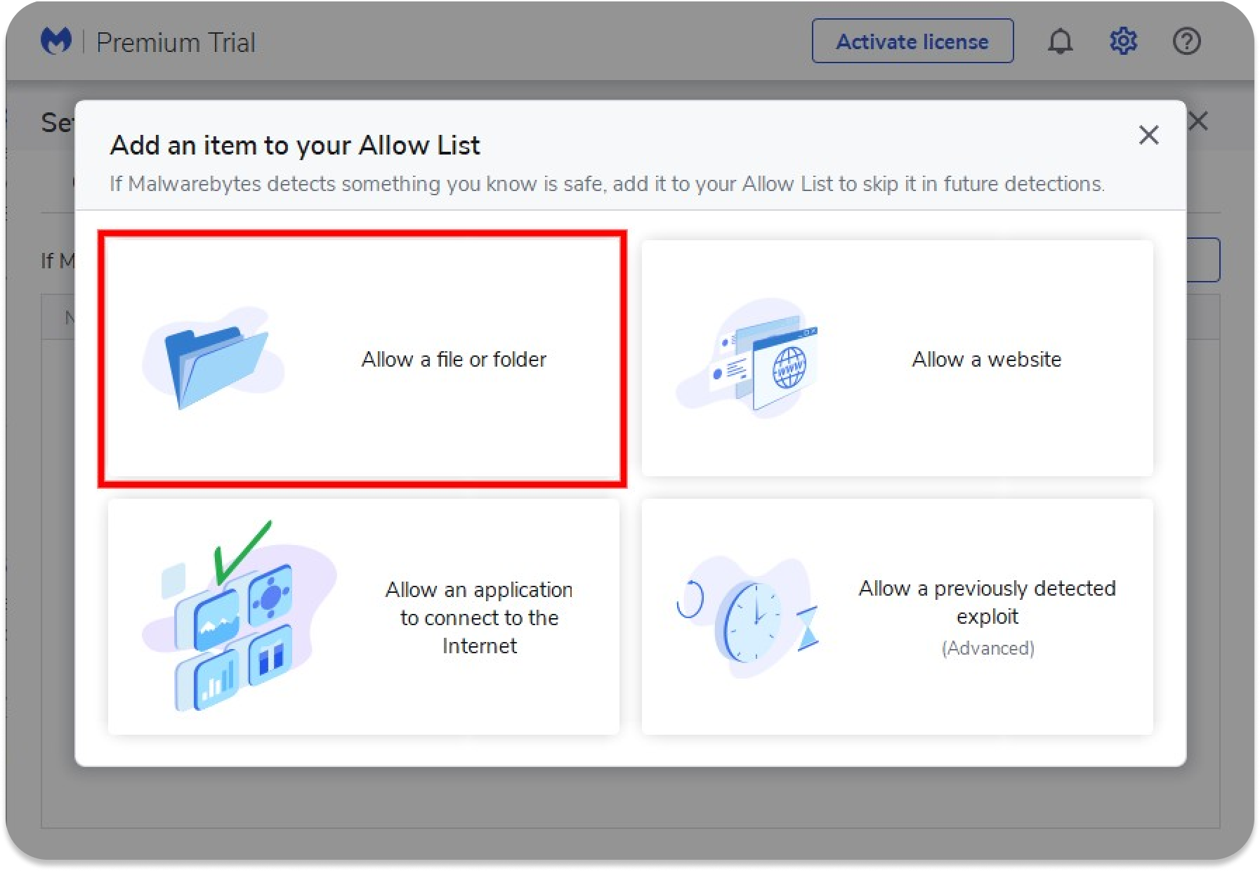 In the new pop-up screen, select Allow a file or folder.