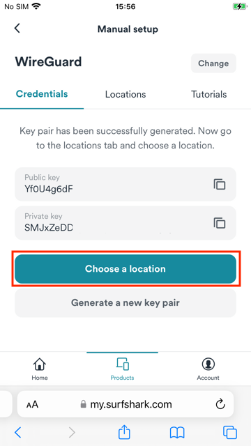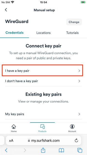 - Open Safari or any browser on your iOS device, and go to Surfshark's login page. Tap Products > VPN > Manual setup > Desktop or mobile > WireGuard